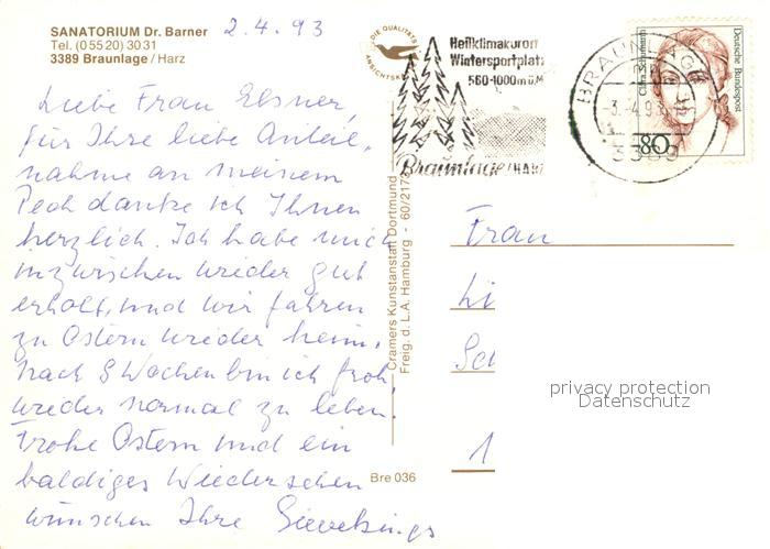 73173675 alte Postkarte Braunlage Sanatorium Dr. Barner postalisch gelaufen Erhaltung siehe scans [LiesaD40] KatCode: 11110003153003
