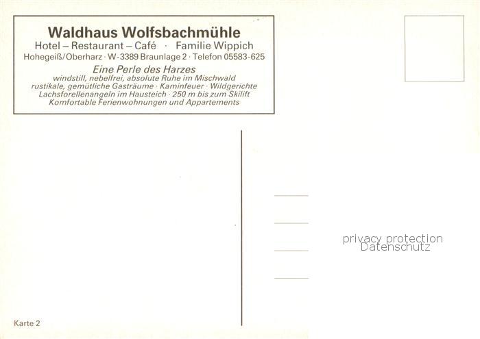 73776084 Braunlage Waldhaus Wolfsbachmuehle Hotel Restaurant postalisch nicht gelaufen Erhaltung siehe scans [WerneD78] KatCode: 11110003153003
