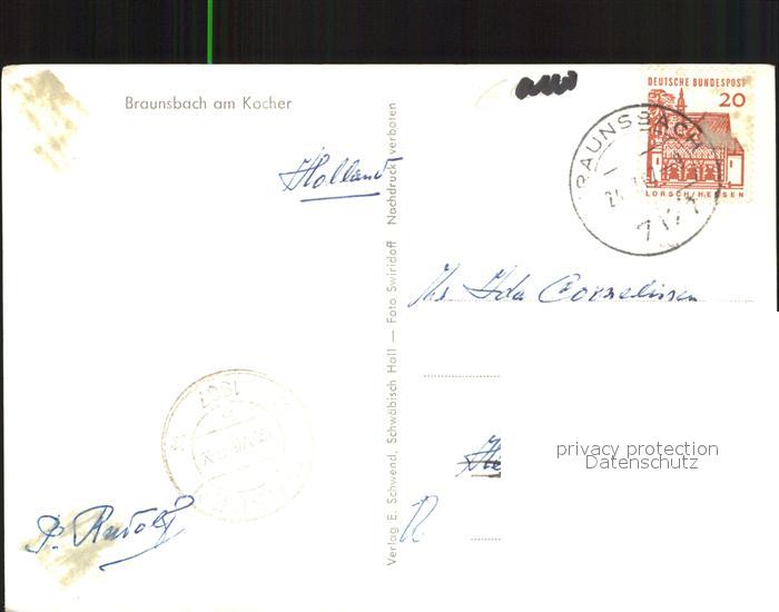 72174951 alte Postkarte Braunsbach Wuerttemberg am Kocher postalisch gelaufen Erhaltung siehe scans KatCode: 11110008127009