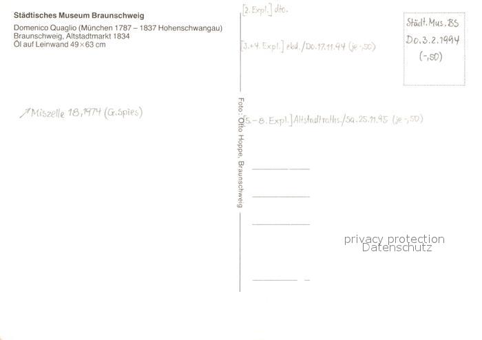 72957071 Braunschweig Altstadtmarkt 1834 oelgemaelde Staedtisches Museum Kuenstlerkarte postalisch nicht gelaufen Erhaltung siehe scans [FriedD77] KatCode: 11110003101000