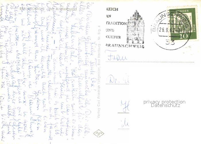 72898722 alte Postkarte Braunschweig Altstadtmarkt postalisch gelaufen Erhaltung siehe scans [PaolaD17] KatCode: 11110003101000