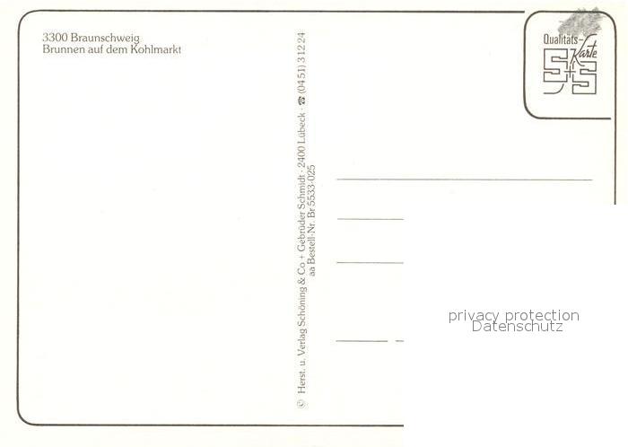 73134891 Braunschweig Brunnen Kohlmarkt postalisch nicht gelaufen Erhaltung siehe scans [NatalD47] KatCode: 11110003101000