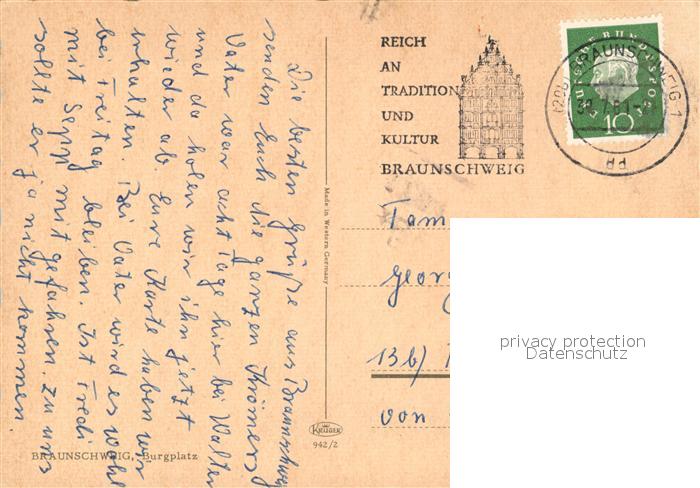 73357746 alte Postkarte Braunschweig Burgplatz Denkmal postalisch gelaufen Erhaltung siehe scans [FriedD77] KatCode: 11110003101000