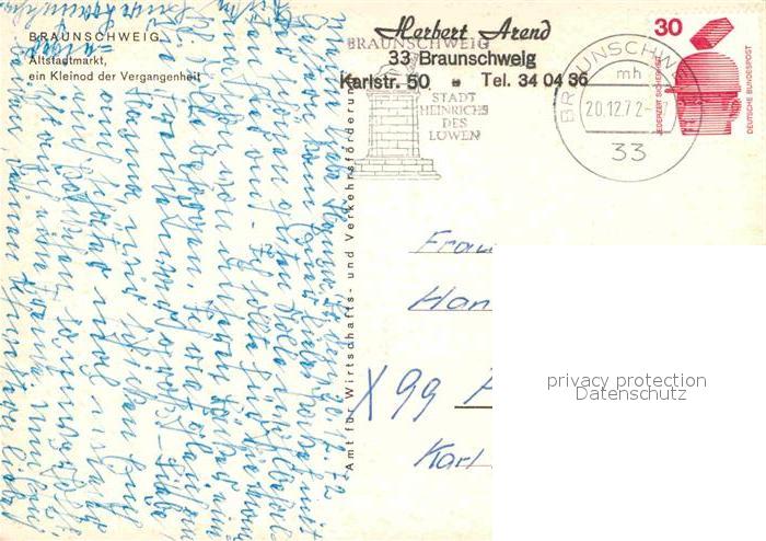 72823465 alte Postkarte BRAUNSCHWEIG CITY Altstadtmarkt postalisch gelaufen Erhaltung siehe scans [KathaD81] KatCode: 11110003101000