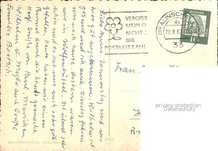 72606648 alte Postkarte BRAUNSCHWEIG CITY Altstadtmarkt postalisch gelaufen Erhaltung siehe scans [NatalD47] KatCode: 11110003101000