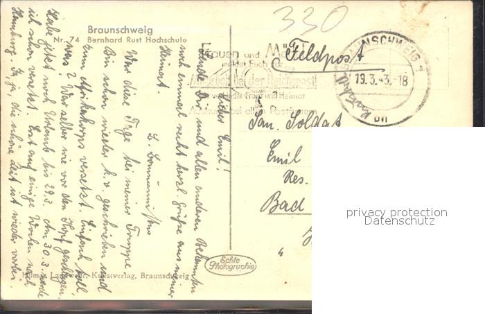 41988967 BRAUNSCHWEIG CITY Bernhard Rust Hochschule postalisch nicht gelaufen Feldpost Erhaltung siehe scans Feldpost Wern Katcode 11110003101000
