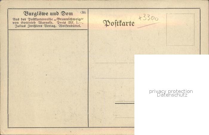 41988970 BRAUNSCHWEIG CITY Burgloewe und Dom Zeichnung postalisch nicht gelaufen Erhaltung siehe scans Alte Ansichtskarte Postkarte Wern Katcode 11110003101000