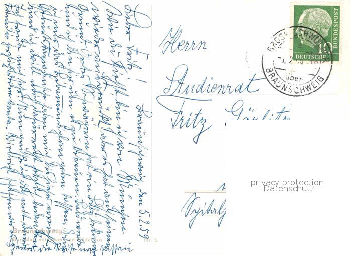 72702350 alte Postkarte BRAUNSCHWEIG CITY Burgplatz mit Loewe und Gildehaus postalisch gelaufen Erhaltung siehe scans [FriedD77] KatCode: 11110003101000