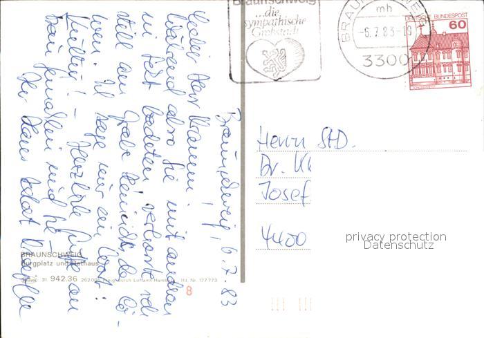72417579 alte Postkarte BRAUNSCHWEIG CITY Burgplatz und Rathaus postalisch gelaufen Erhaltung siehe scans KatCode: 11110003101000