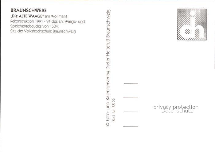 72608775 BRAUNSCHWEIG CITY Die Alte Waage und Speicher postalisch nicht gelaufen Erhaltung siehe scans [LiesaD40] KatCode: 11110003101000