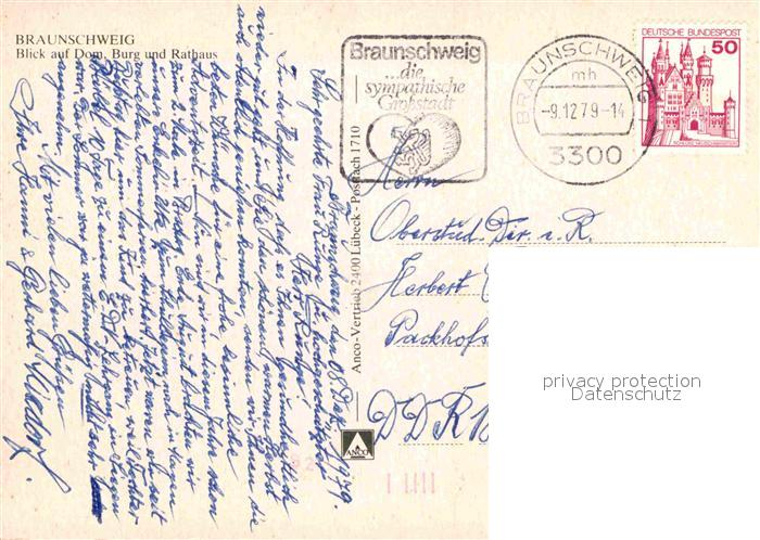 72846780 alte Postkarte BRAUNSCHWEIG CITY Dom Burg Rathaus postalisch gelaufen Erhaltung siehe scans [KathaD81] KatCode: 11110003101000