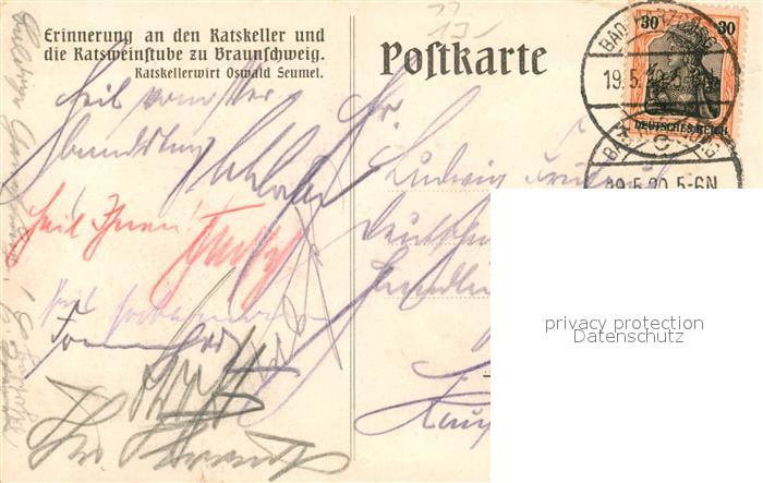 43017321 alte Postkarte BRAUNSCHWEIG CITY Erinnerung an den Ratskeller und Ratsweinstube Wappen Kuenstlerkarte postalisch gelaufen Erhaltung siehe scans [FriedD77] KatCode: 11110003101000