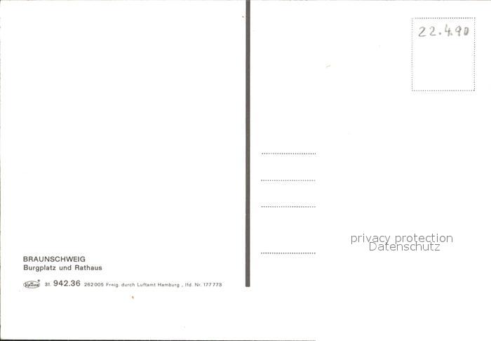 72257932 BRAUNSCHWEIG CITY Fliegeraufnahme Burgplatz mit Rathaus postalisch nicht gelaufen Erhaltung siehe scans KatCode: 11110003101000