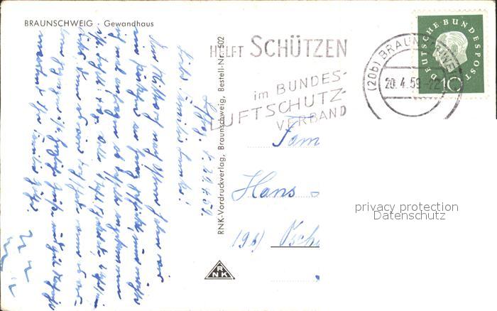 71942274 alte Postkarte BRAUNSCHWEIG CITY Gewandhaus postalisch gelaufen Erhaltung siehe scans KatCode: 11110003101000