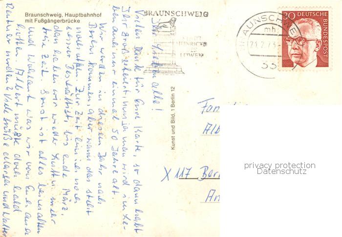 74052507 BRAUNSCHWEIG CITY Hauptbahnhof mit Fussgaengerbruecke postalisch gelaufen Erhaltung siehe scans [FriedD77] alte Postkarte Frie Katcode 11110003101000