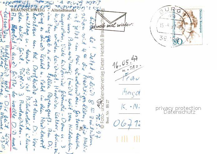 72696461 alte Postkarte BRAUNSCHWEIG CITY Historischer Altstadtmarkt Gewandhaus Zollhaus Rathaus Giebel Haus zu den sieben Tuermen Marienbrunnen postalisch gelaufen Erhaltung siehe scans [FriedD77] KatCode: 11110003101000