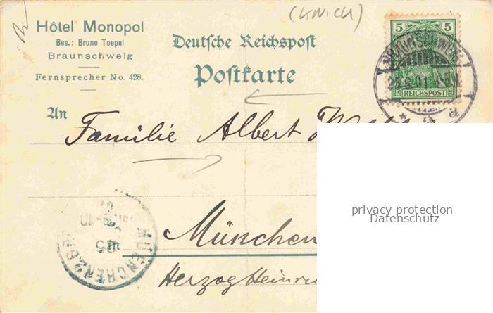 74010323 BRAUNSCHWEIG CITY Hotel Monopol Litho Deutsche Reichspost postalisch gelaufen Erhaltung siehe scans [FriedD77] alte Postkarte Frie Katcode 11110003101000