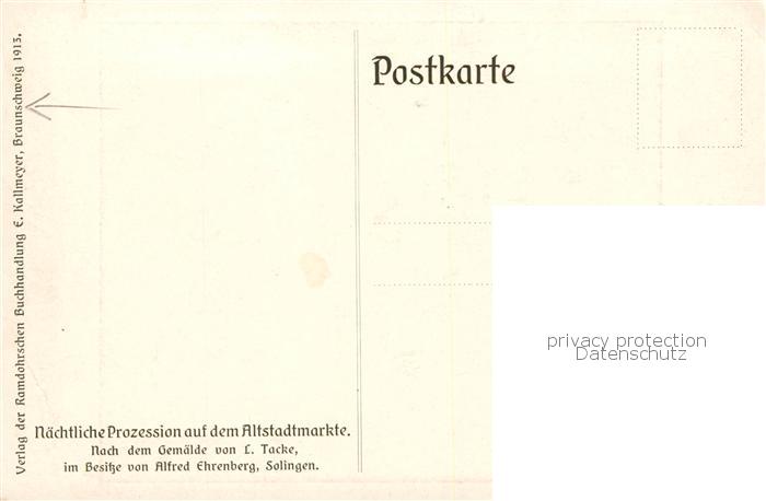 73823422 BRAUNSCHWEIG CITY Naechtliche Prozession auf dem Altstadtmarkte Kuenstlerkarte postalisch nicht gelaufen Erhaltung siehe scans [FriedD77] Frie Katcode 11110003101000