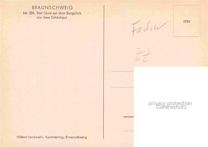 72694081 BRAUNSCHWEIG CITY Nr 224 Loewe auf dem Burgplatz Gildehaus Denkmal postalisch nicht gelaufen Erhaltung siehe scans [FriedD77] KatCode: 11110003101000
