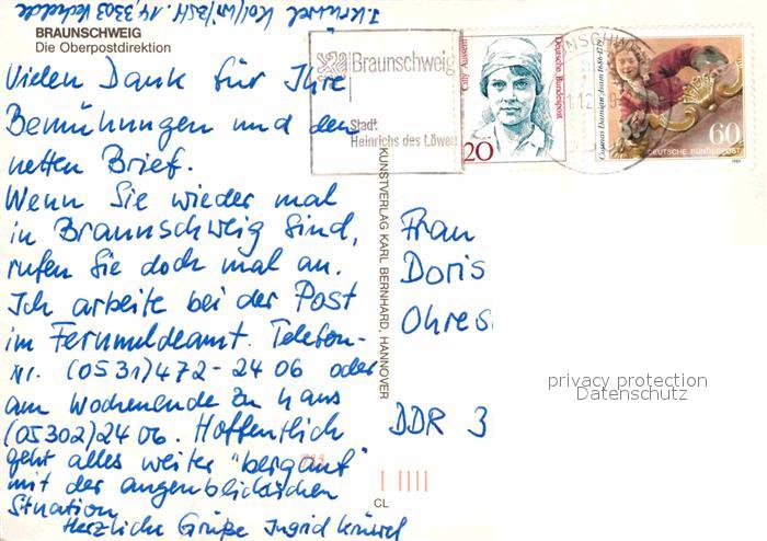 72846722 alte Postkarte BRAUNSCHWEIG CITY Oberpostdirektion postalisch gelaufen Erhaltung siehe scans [KathaD81] KatCode: 11110003101000