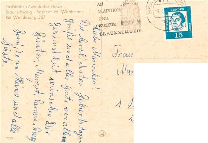 73924607 BRAUNSCHWEIG CITY Raststaette Zweidorfer Holz postalisch gelaufen Erhaltung siehe scans [FriedD77] alte Postkarte Frie Katcode 11110003101000