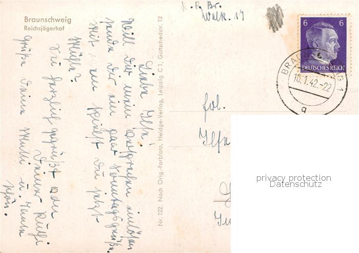 73821160 BRAUNSCHWEIG CITY Reichsjaegerhof postalisch gelaufen Erhaltung siehe scans [WerneD78] alte Postkarte Wern Katcode 11110003101000
