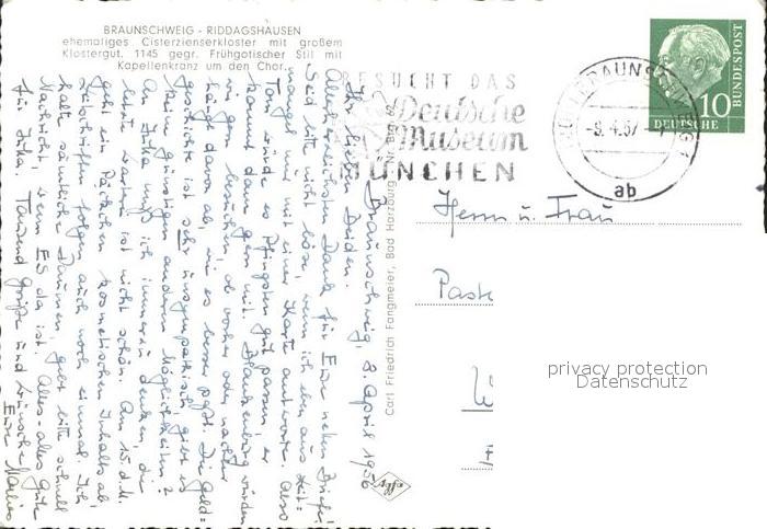 72147659 alte Postkarte BRAUNSCHWEIG CITY Riddagshausen Kloster postalisch gelaufen Erhaltung siehe scans KatCode: 11110003101000