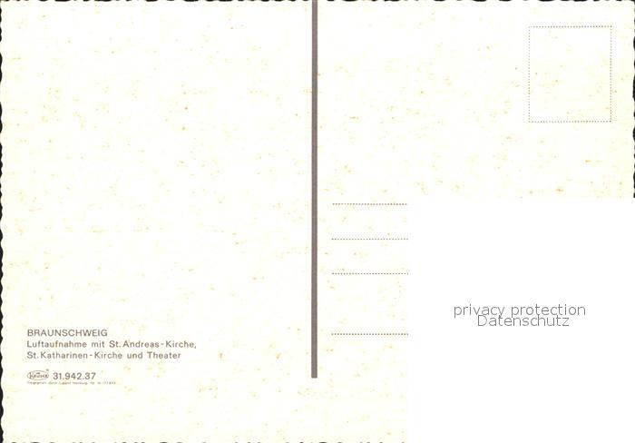 72261073 BRAUNSCHWEIG CITY St Andreas Kirche St Katharinen Kirche Theater Fliegeraufnahme postalisch nicht gelaufen Erhaltung siehe scans KatCode: 11110003101000