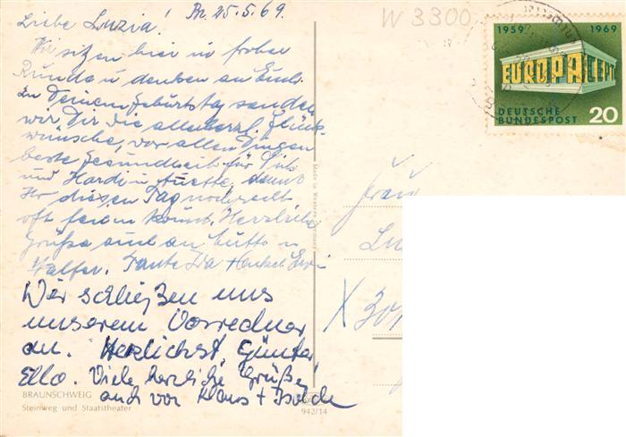 73886071 BRAUNSCHWEIG CITY Steinweg und Staatstheater postalisch gelaufen Erhaltung siehe scans [FriedD77] alte Postkarte Frie Katcode 11110003101000
