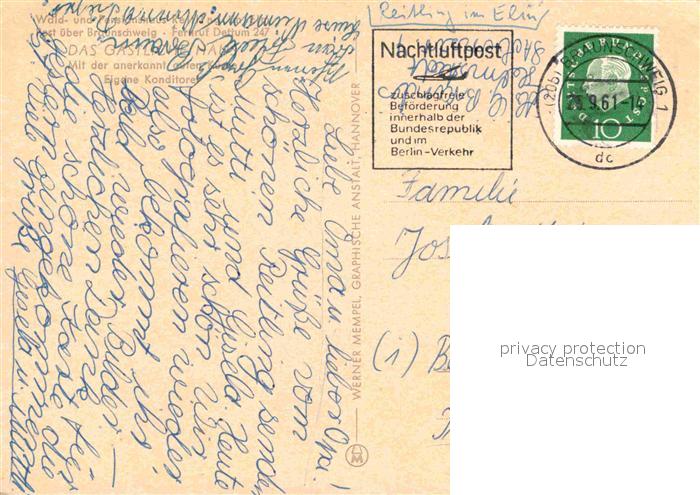 72823349 alte Postkarte BRAUNSCHWEIG CITY Wald und Pensionshaus Reitling im Elm postalisch gelaufen Erhaltung siehe scans [FriedD77] KatCode: 11110003101000