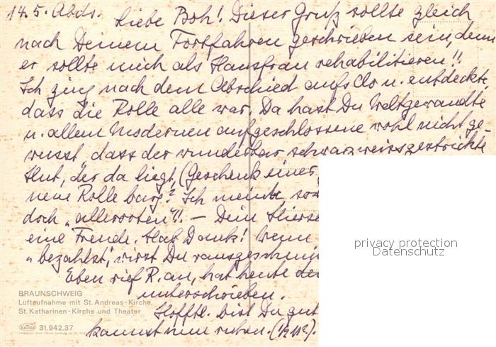 73541077 Braunschweig Fliegeraufnahme mit St Andreas Kirche St Katharinen Kirche und Theater postalisch nicht gelaufen Erhaltung siehe scans [WerneD78] KatCode: 11110003101000