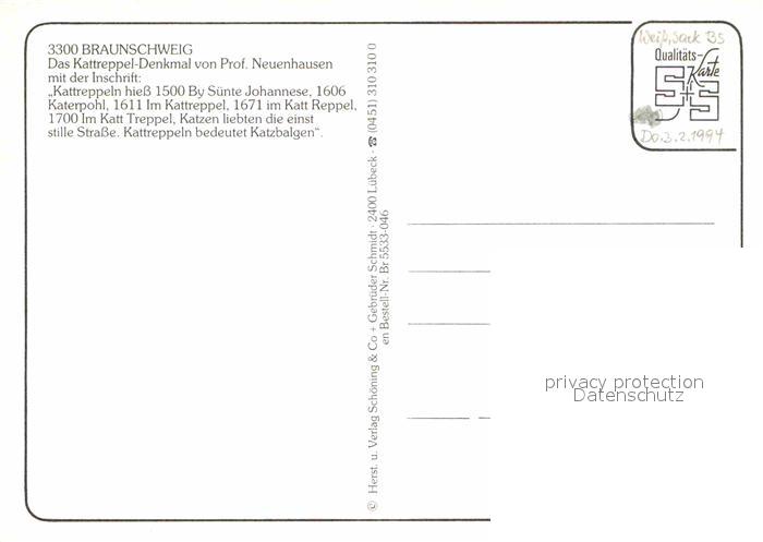 72910079 Braunschweig Kattreppel-Denkmal von Prof. Neuenhause postalisch nicht gelaufen Erhaltung siehe scans [LiesaD40] KatCode: 11110003101000