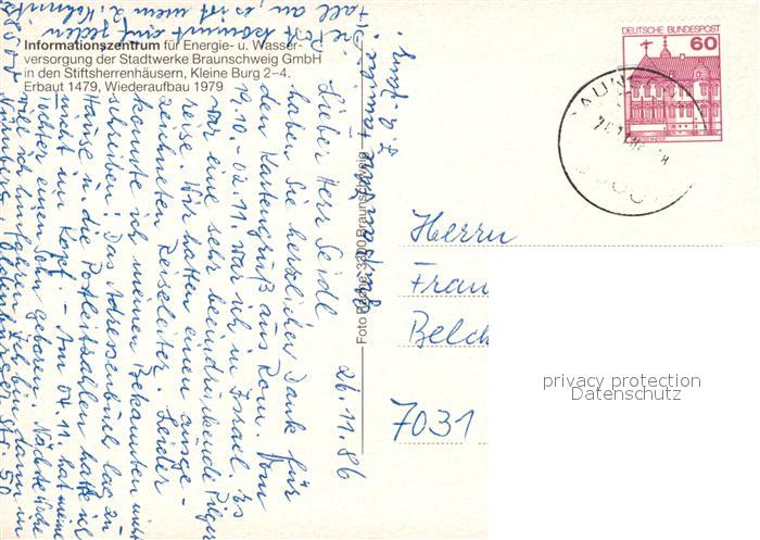 73079279 alte Postkarte Braunschweig Stiftsherrenhaeuser postalisch gelaufen Erhaltung siehe scans [KathaD81] KatCode: 11110003101000
