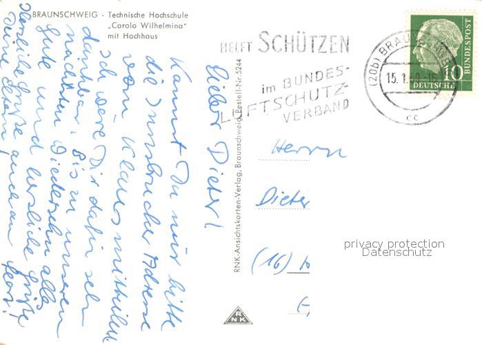 73357553 alte Postkarte Braunschweig Technische Hochschule Carola Wilhelmina Hochhaus postalisch gelaufen Erhaltung siehe scans [FriedD77] KatCode: 11110003101000