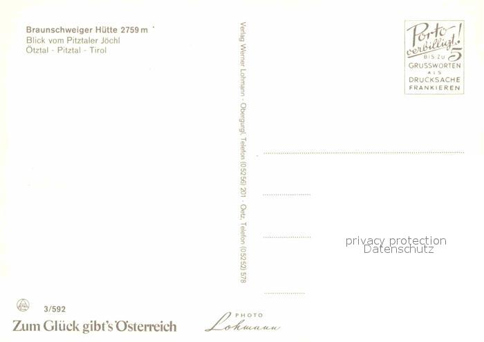 72800963 Braunschweigerhuette Gebirgspanorama Blick vom Pitztaler Joechl postalisch nicht gelaufen Erhaltung siehe scans [FriedD77] KatCode: 11390334070203