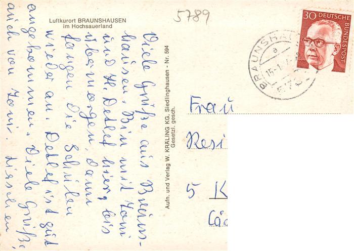 73883756 alte Postkarte Braunshausen Sauerland Panorama Luftkurort postalisch gelaufen Erhaltung siehe scans [FriedD77] KatCode: 11110005958020