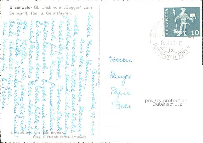11631940 alte Postkarte Braunwald GL — postalisch gelaufen KatCode: 11470090300864