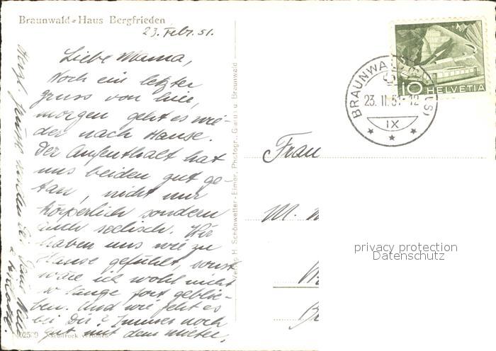 11631774 alte Postkarte Braunwald GL Haus Bergfrieden Winterimpressionen postalisch gelaufen Erhaltung siehe scans KatCode: 11470090300864