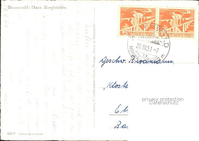 11631763 alte Postkarte Braunwald GL Haus Bergfrieden Winterimpressionen postalisch gelaufen Erhaltung siehe scans KatCode: 11470090300864