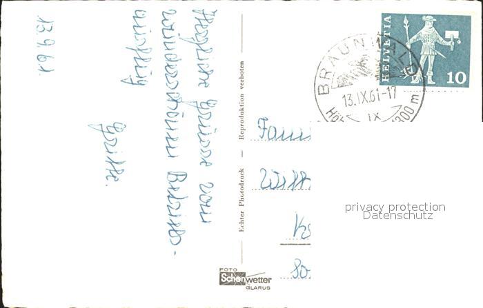 11653727 alte Postkarte Braunwald GL Hotel Alpenblick mit Ortstock postalisch gelaufen Erhaltung siehe scans KatCode: 11470090300864