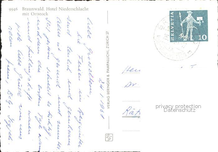 11631850 alte Postkarte Braunwald GL Hotel Niederschlacht mit Ortstock Glarner Alpen Winterimpressionen postalisch gelaufen Erhaltung siehe scans KatCode: 11470090300864