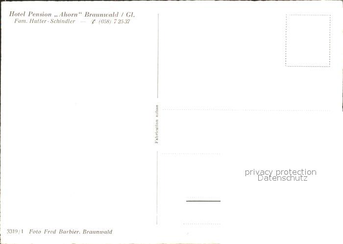 11631966 Braunwald GL Hotel Pension Ahorn Restaurant postalisch nicht gelaufen Erhaltung siehe scans KatCode: 11470090300864