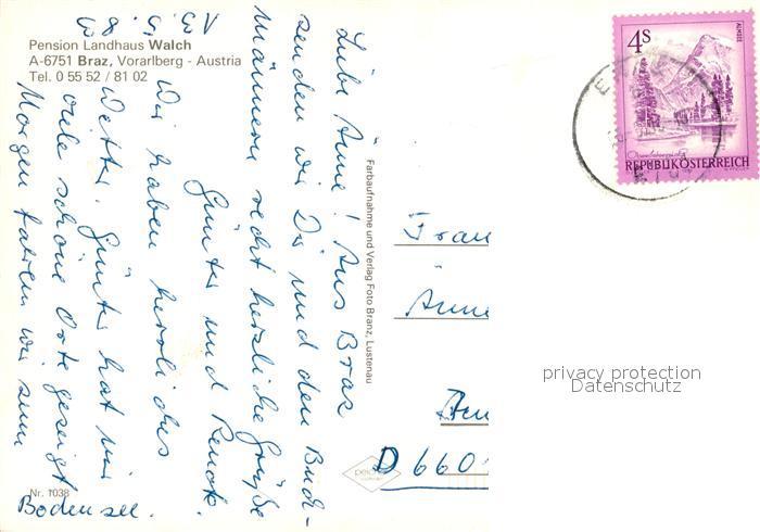 73338256 alte Postkarte Braz Pension Landhaus Walch postalisch gelaufen Erhaltung siehe scans [LiesaD40] KatCode: 11390341080111