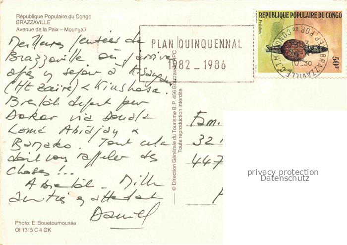Brazzaville Kongo Avenue de la Paix Moungali postalisch gelaufen Erhaltung siehe scans [WerneD78] alte Postkarte Wern Katcode 18230