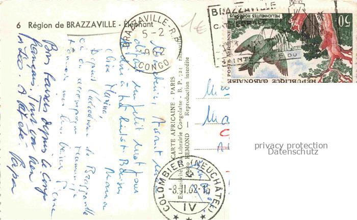 74112904 old postcard Brazzaville Kongo Elefant postalisch gelaufen Erhaltung siehe scans [SanaeD93] KatCode: 18230