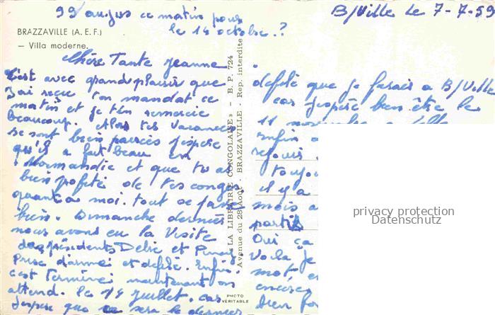 74113601 Brazzaville Kongo Villa moderne postalisch nicht gelaufen Erhaltung siehe scans [SanaeD93] KatCode: 18230
