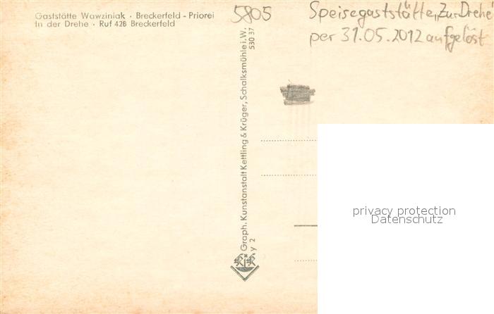 73708777 Breckerfeld Gaststaette Wawziniak Priorei In der Drehe postalisch nicht gelaufen Erhaltung siehe scans [LiesaD40] KatCode: 11110005954004