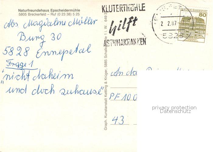 73717704 alte Postkarte Breckerfeld Naturfreundehaus Epscheidermuehle Ententeich postalisch gelaufen Erhaltung siehe scans [WerneD78] KatCode: 11110005954004