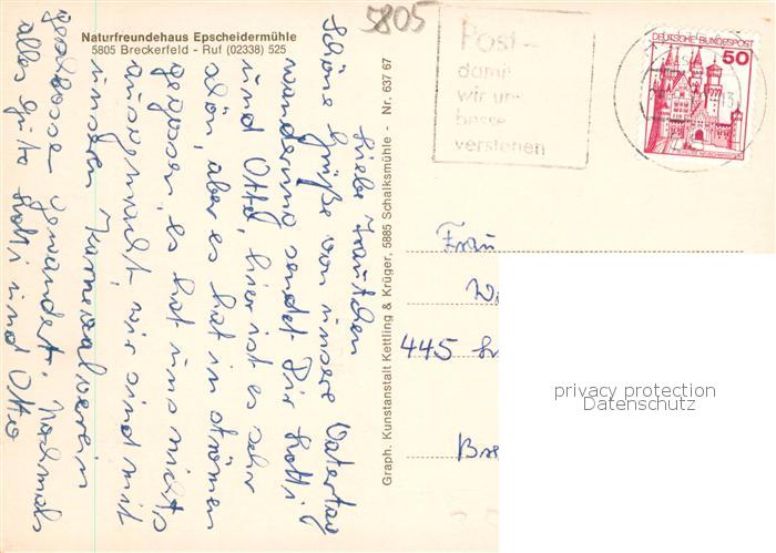 73870198 alte Postkarte Breckerfeld Naturfreundehaus Epscheidermuehle postalisch gelaufen Erhaltung siehe scans [WerneD78] KatCode: 11110005954004
