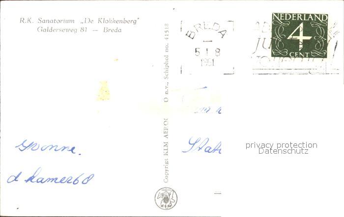 old postcard Breda Noord-Brabant Fliegeraufnahme R.K. Sanatorium De Klokkenberg postalisch gelaufen Erhaltung siehe scans